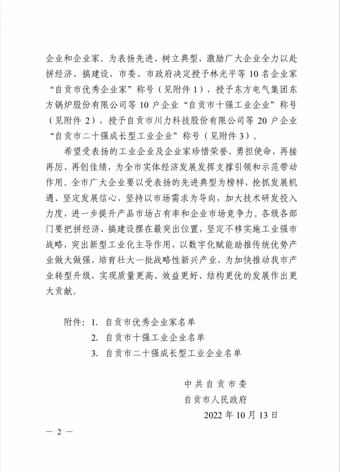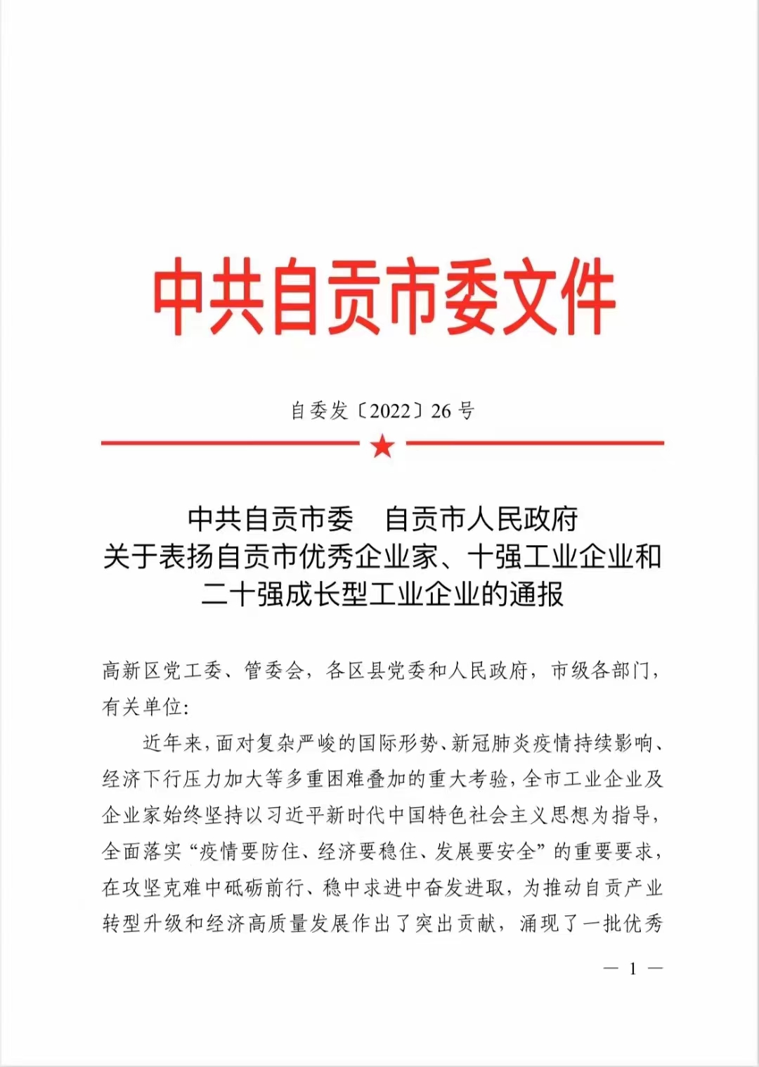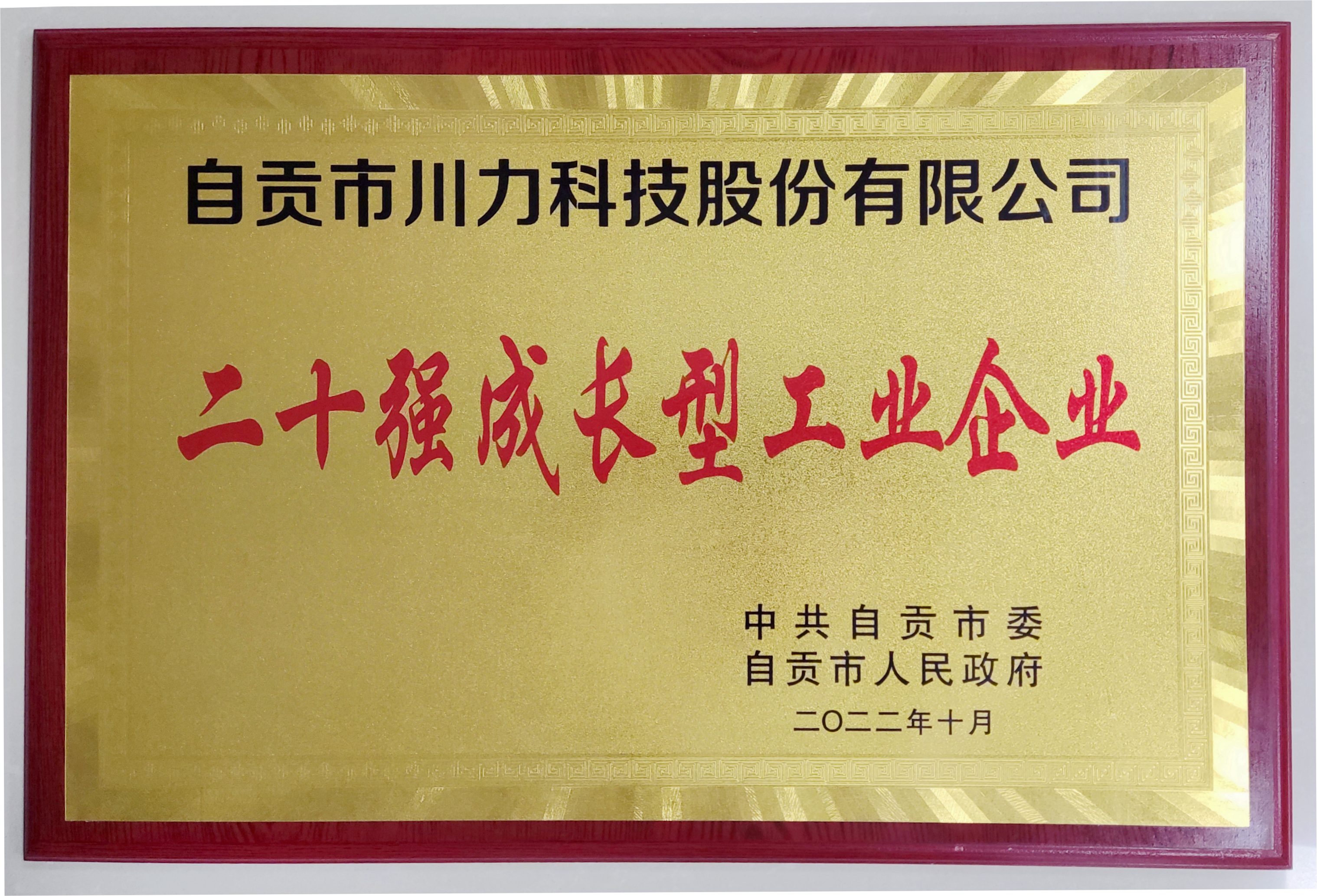 熱烈祝賀我公司榮獲自貢市“二十強(qiáng)成長型工業(yè)企業(yè)”稱號(hào)